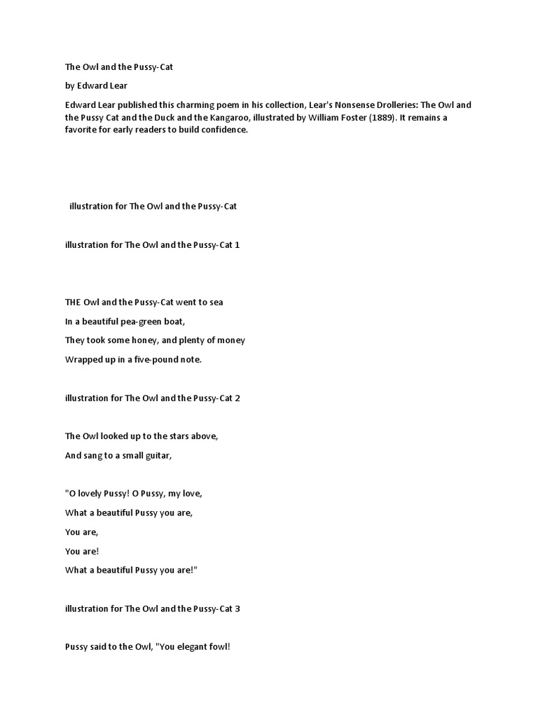 - Pin On Owl And The Pussycat - Nonsense Drolleries By Edward Lear Download Read More.