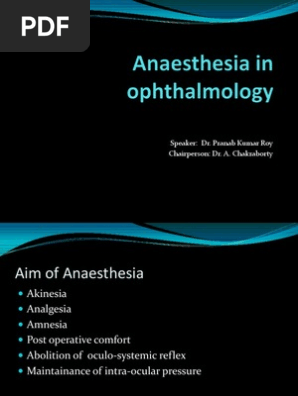 - Ocular Anesthesia : (Redirected From Anaesthesia For Ocular Surgery).
