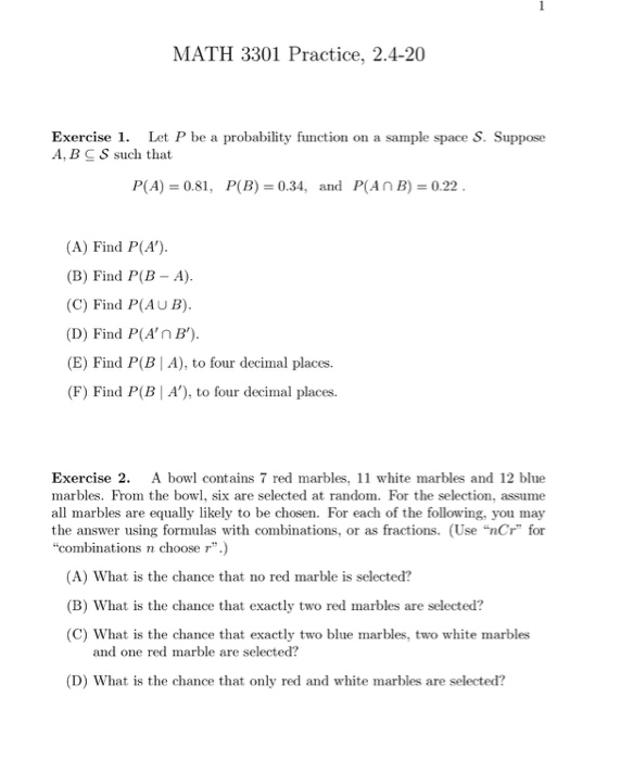 Selected B : Solved Math 3301 Practice 2 4 20 Exercise 1 Let P Be A Chegg Com