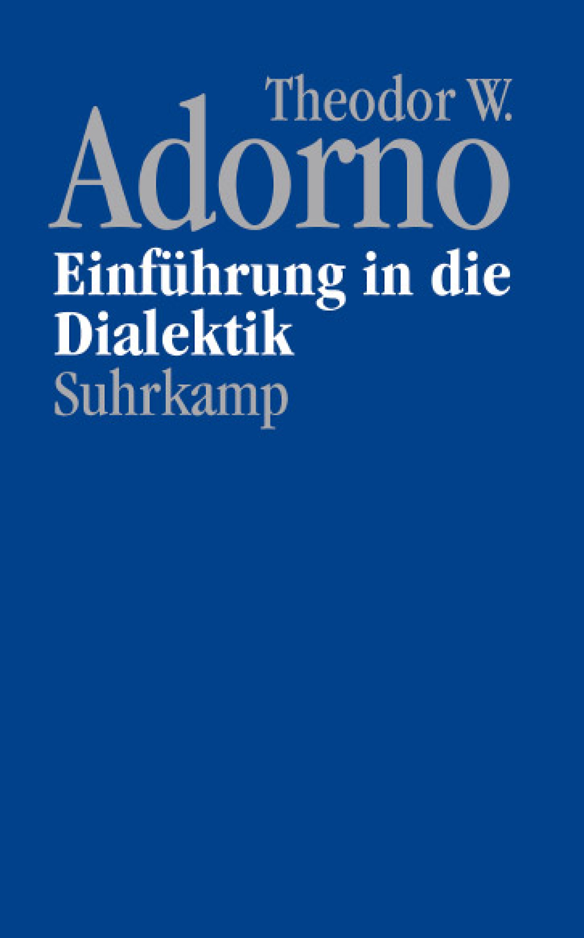 Theodor W Adorno Zur Einfuhrung : Nachgelassene Schriften Abteilung Iv Vorlesungen Band 2 Einfuhrung In Die Dialektik 1958 Von Theodor W Adorno Suhrkamp Insel Bucher Buchdetail
